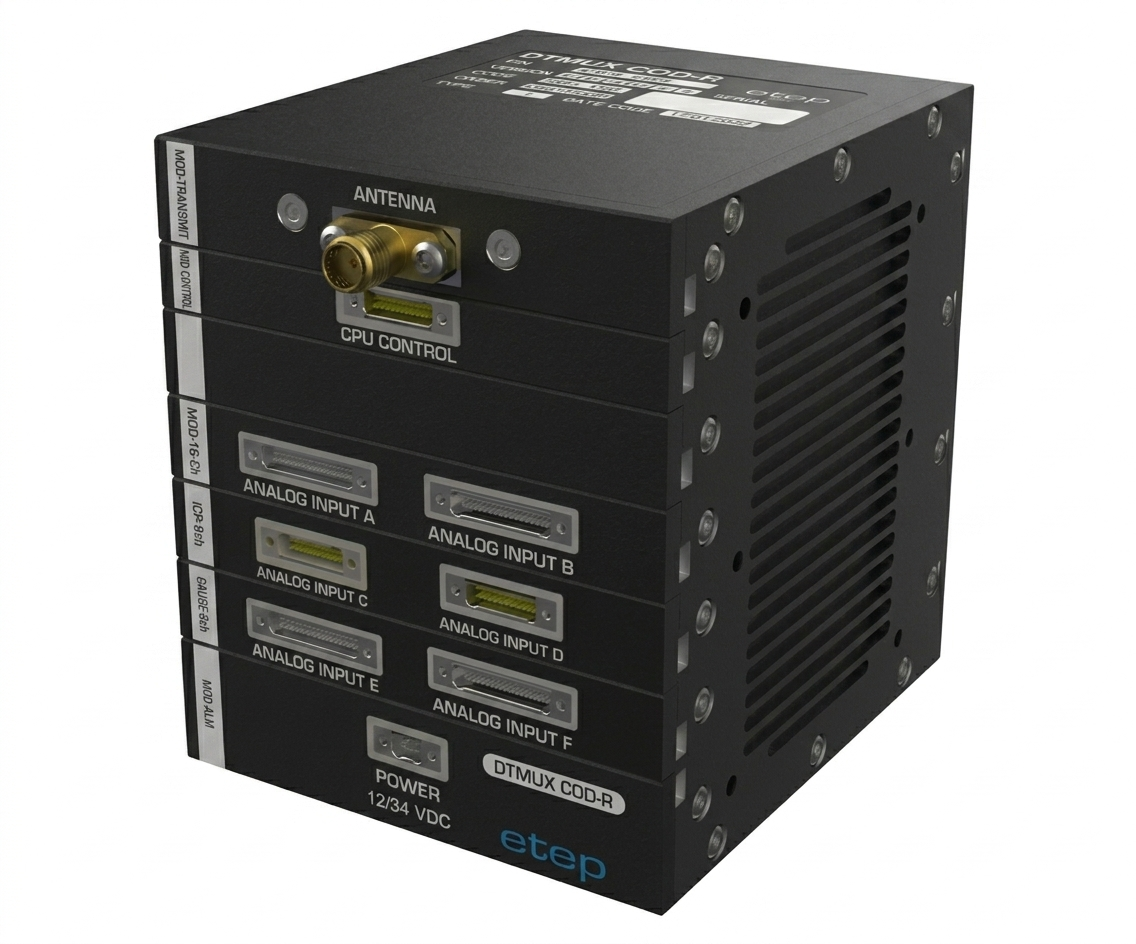 D.T.MUX COD-R, çok düşük gecikmeli gerçek zamanlı iletim özelliğine sahip minyatür bir veri toplama sistemidir (128 kanala kadar). Özellikle darbe test sistemi veya İHA gibi entegrasyon alanı kısıtlamalarının maksimum olduğu yüksek stresli ortamlar ve tahrip edici testler için tasarlanmıştır. Ünite, şasi boyutlarına göre kullanıcı tarafından seçilebilen 1 ila 6 adet veri toplama modülünden oluşur. Modüller, analog veya dijital veri toplama ihtiyaçlarına göre seçilebilir.