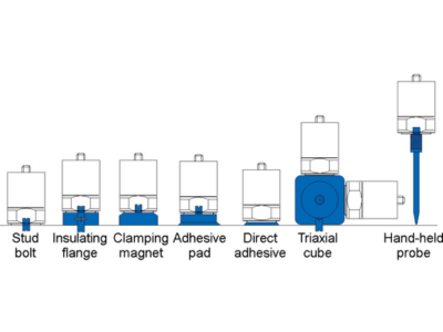 - Mıknatıs – makine tanılama için çok yaygın olarak kullanılan bir montaj tekniği, sensörü bir mıknatıs üzerine monte etmektir. Bu yine de iyi bir bant genişliği üretecektir, ancak elbette yüzey ferromanyetik olmalıdır (alüminyum veya plastik değil). Montaj klipsini kullanabileceğimiz sensörlerde, montaj klipsini ön tarafa yapıştırılabilir ve ardından sensörün kendisi takılabilir.